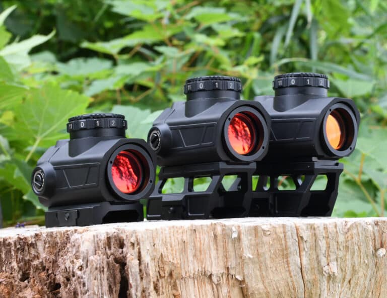 - Top-mounted brightness dial is easy to adjust for any shooter, regardless if you’re left or right handed